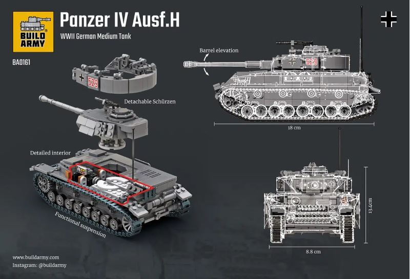 | 1/33 BRICK MODEL | BUILD ARMY 80161 1/33 WW2 GERMAN Panzer IV Ausf H Brick Model |