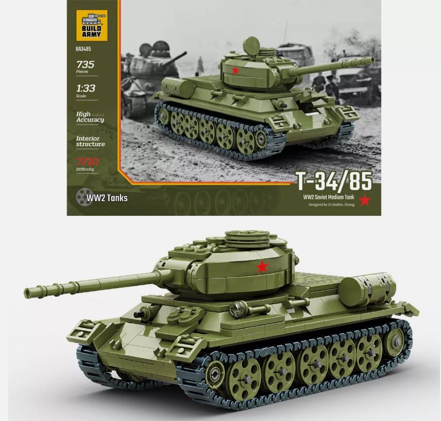 | 1/33 SCALE BRICK MODEL | Build Army B3485 1/33 Soviet T-34/85 Tank Brick Model 735pcs |