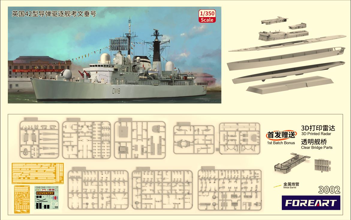 | 1/350 | FORART FORE HOBBY 3002 1/350 HMS Coventry Type 42 Guided Missile Destroyer Batch 1 |