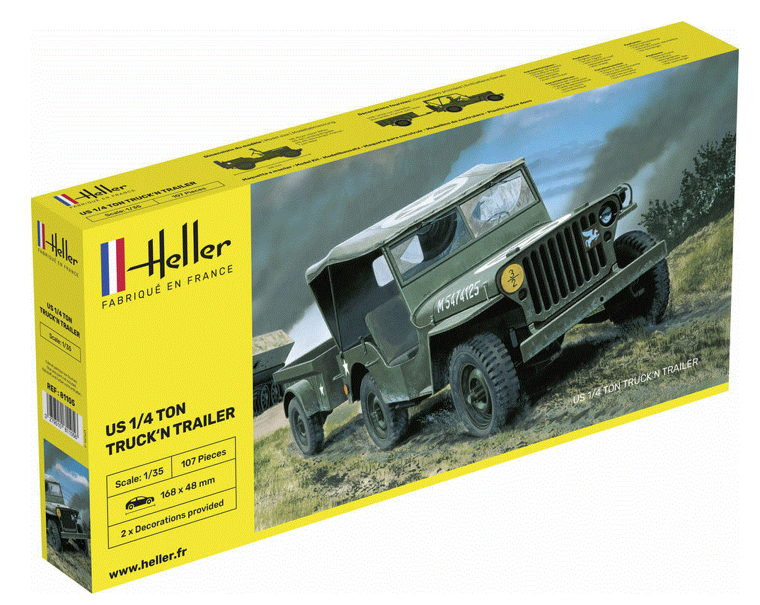 Heller 81105 1:35 WW2 US Army Jeep Willis & Trailer Overlord