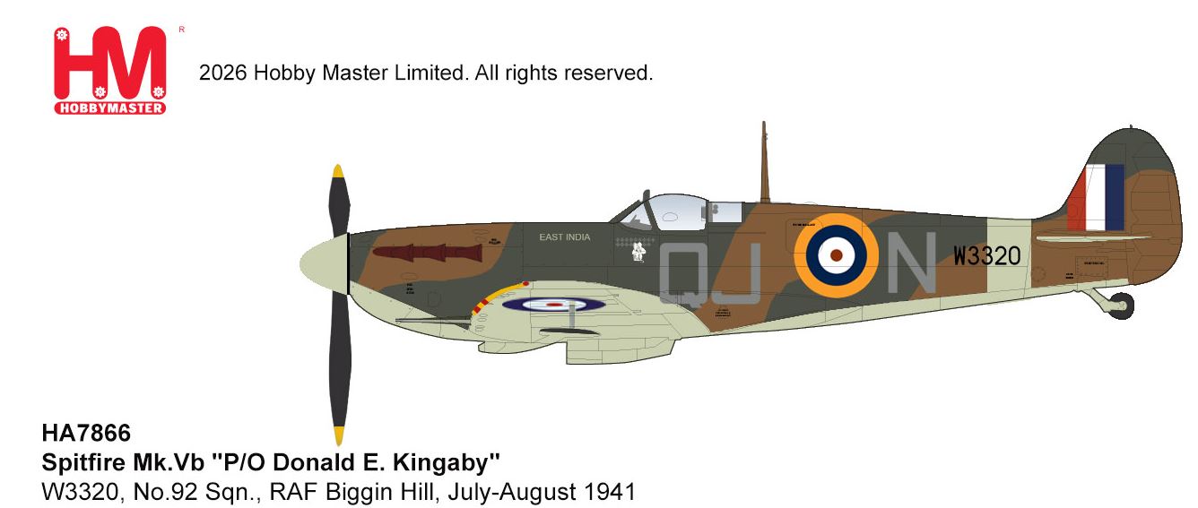 HOBBY MASTER HA7866 1/48 Spitfire VB Flight Sergeant Donald E Kingaby 92 Sqn Fighter Sweeps 1941