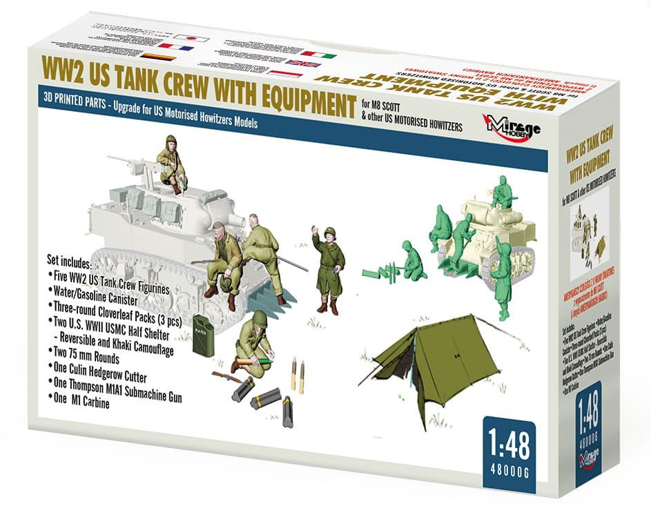 Mirage Hobby 480006 1/48 WW2 US Tank Crew With Equipment For M8 Scott And Other US Motorised Howitzers WEST WALL