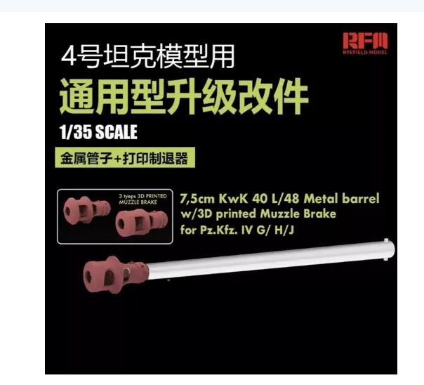 | 1/35 SCALE MODEL | RYE FIELD 2083 1/35 7,5cm KwK 40 L/48 Metal Barrel w/3D Printed Muzzle Brake |